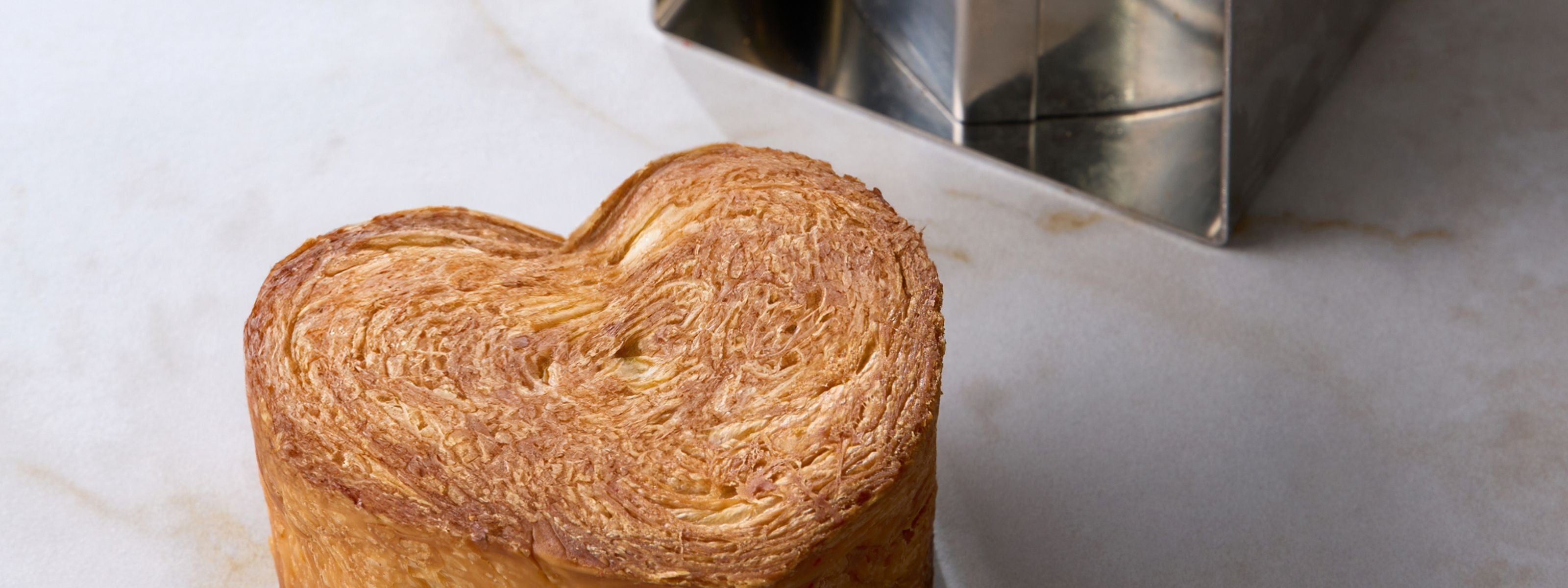 Mettere il latte a -20°C per tutto il tempo della lievitazione del poolish. Tutto il resto degli ingredienti ad esclusione della farina in frigorifero. Quando il poolish sarà pronto impastare tutti gli ingredienti insieme all’interno della spirale. Far girare i primi 5 minuti a velocità 1 poi passare a velocità 2 per 12/15 minuti. L’impasto non deve superare i 24°C. Spezzare in pastoni da 1750 g, pirlare e lasciar puntare circa 40 minuti a temperatura ambiente. Stendere all’interno di una teglia coperto con una busta alimentare e passare 10 minuti in abbattitore negativo. Riporre tutta la notte a +4°C. L’indomani incassare 500 g di burro e dare una piega da 4 ed una da 3 consecutive. Inserire 70 g di pasta all’interno dello stampo lasciar lievitare a 26°C. Cottura 180°C per 13/15 minuti