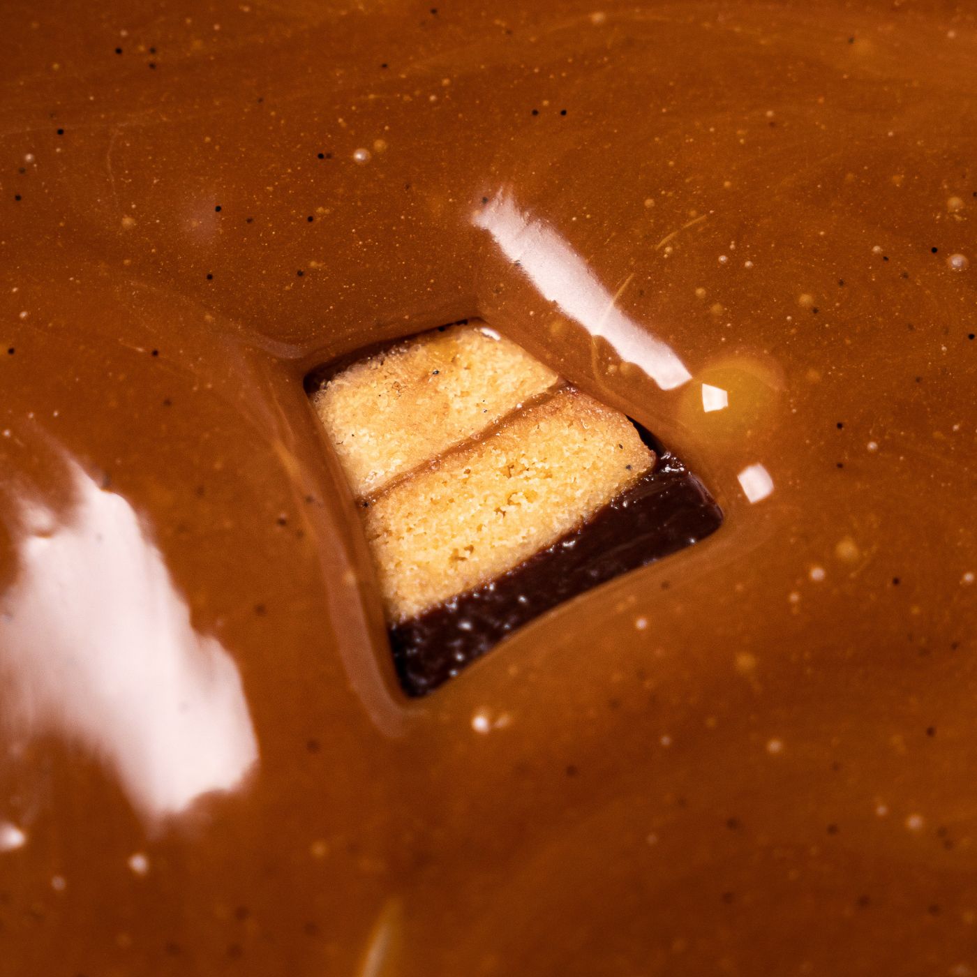 4. Infine, dosare la ganache al cioccolato fondente e lasciarla cristallizzare.
