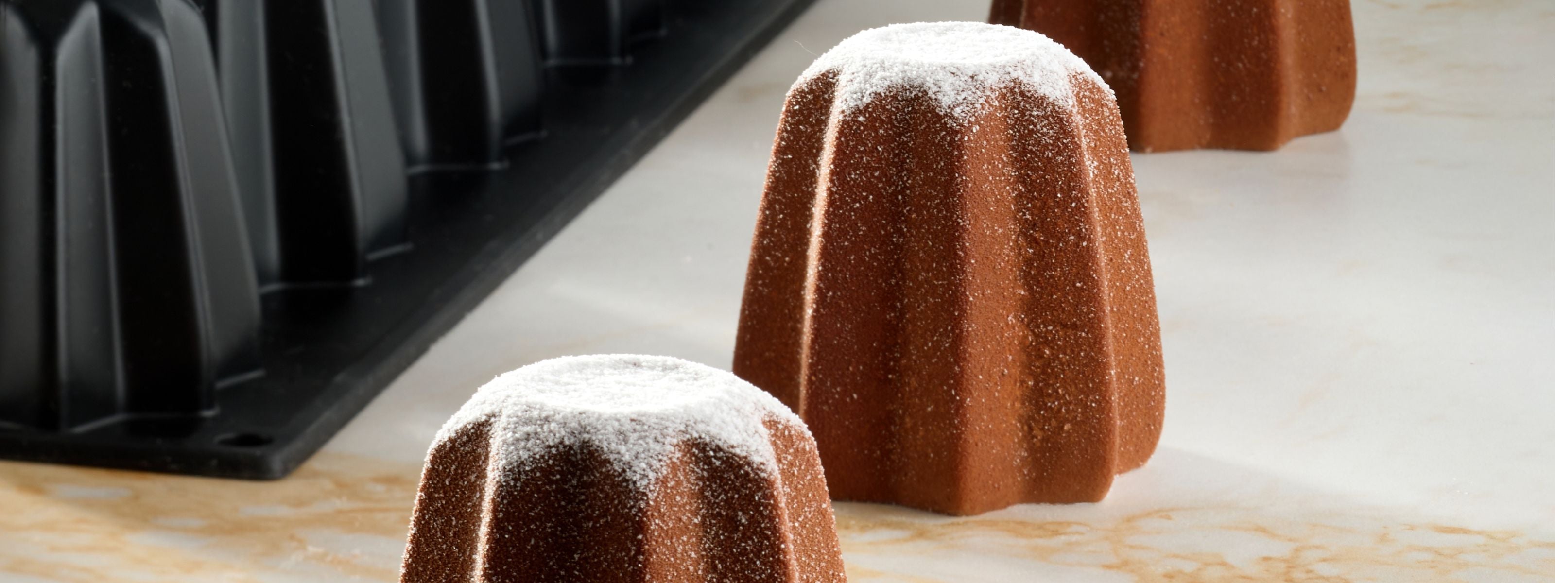 Spray the very cold single portion with the DV6SB cocoa butter spray. Spray the very cold pandoro head with the DV7SB cocoa butter spray to recall the icing sugar effect.