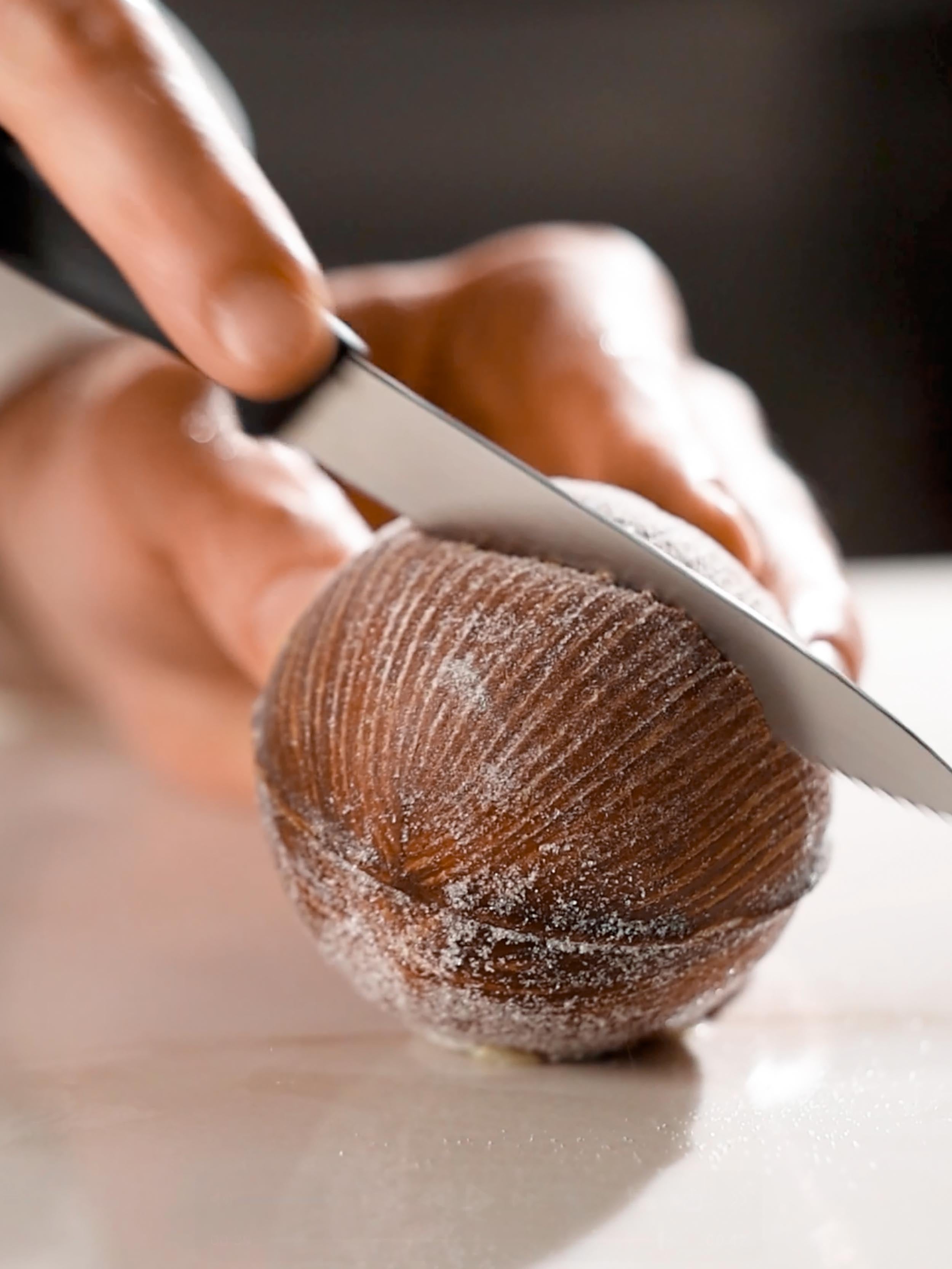 The next day, place in the sphere molds and cook at 180°C for approximately 15 minutes.