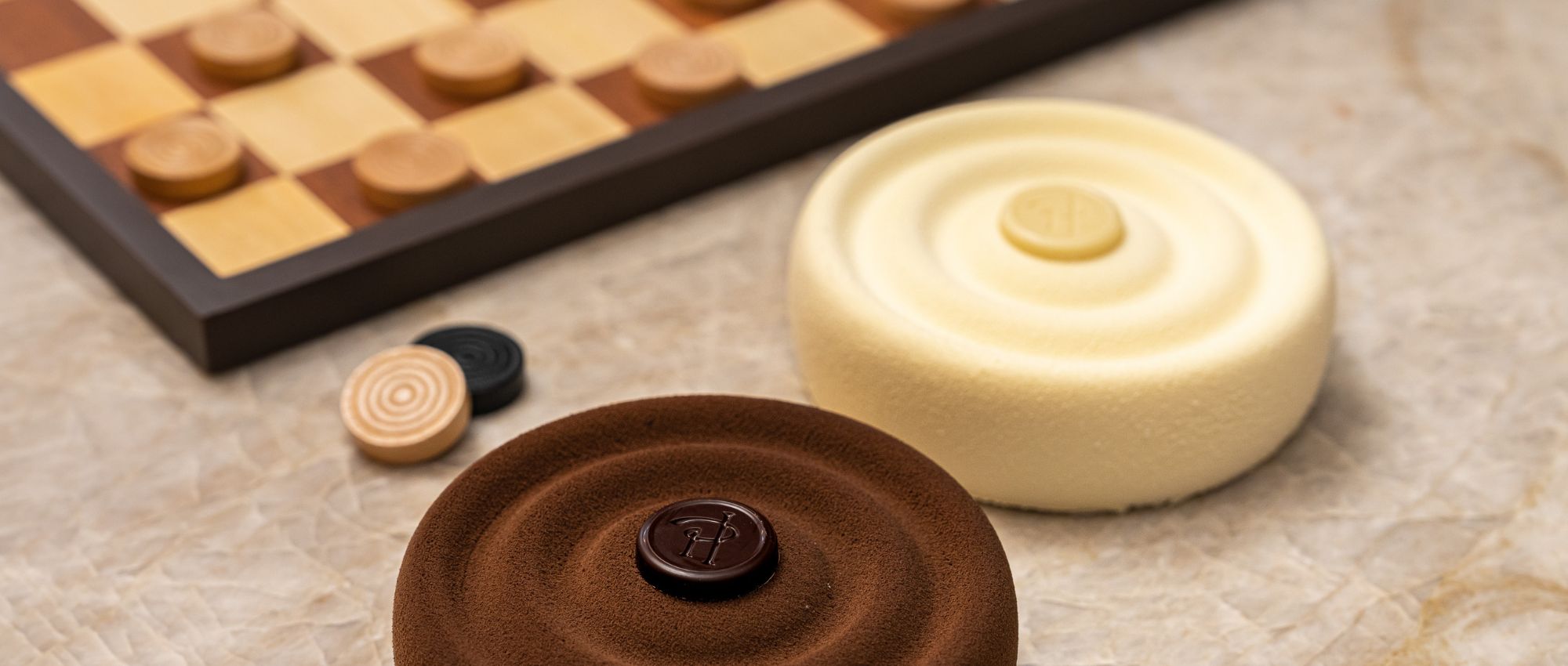 Heat the gelatine to 70°C. Place the entremets on a rack and spray a thin layer of gelatine. Refreeze. Spray with the chocolate mixture (at 45°C) straight from the freezer for a velvet effect. Place on 2 cm larger trays and leave to defrost in the fridge.